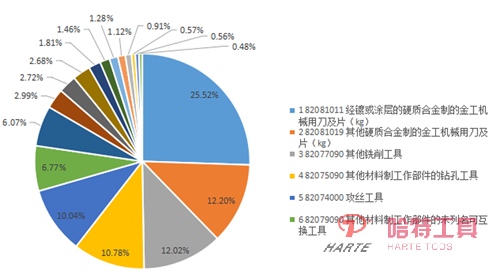 2021年刀具出口額225.16億人民幣,同比2020年增長25.45%,與2019年同比增長22.28%;進口額106.32億人民幣,同比2020年增長5.69%,與2019年同比下降4.14%。進口工具價格遠高于出口價格。其中:涂層刀片的進口平均價格約為出口平均價格的3.81倍,未涂層刀片為6.41倍,攻絲工具為10.03倍,銑刀為2.71倍,量具17.06倍??梢姡ぞ邍a(chǎn)化在未來具有很大的潛力。